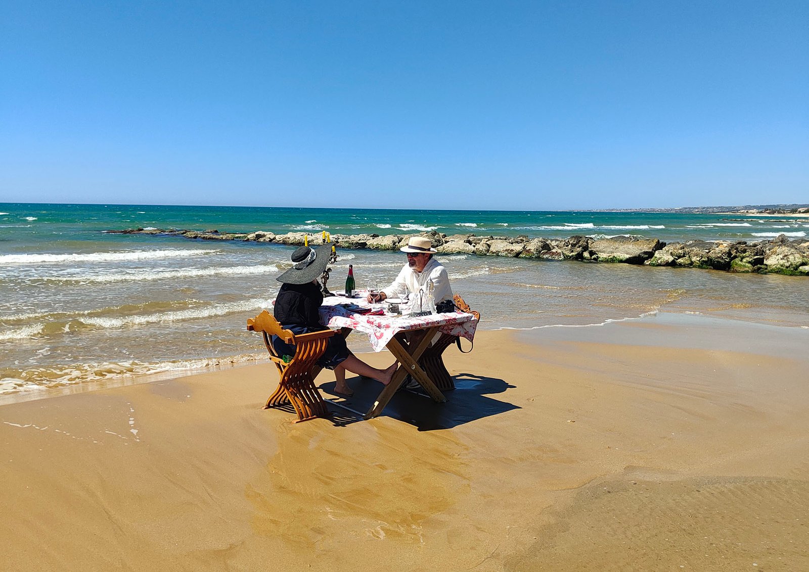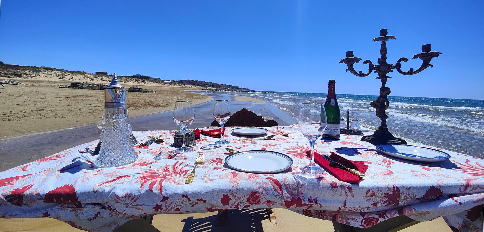 For our very special guests, we propose the most unique and romantic experience of a lifetime with a private lunch or dinner “pieds dans l’eau”, be that a “tête-à-tête for two” or for a group, on a beautiful secluded sandy beach nearby. We will make all the arrangements with a renown local chef to prepare and have delivered the meals and we bring the best wines Sicily has to offer.